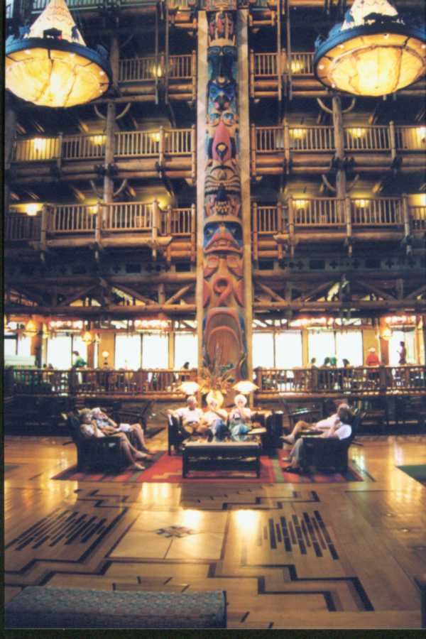 04-21-1999 Part of the lobby of the Wilderness Lodge. All I can say about this place is 'AWESOME!' |